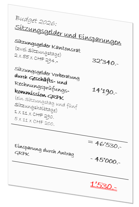 Bilanz: Die Vorbereitung und Beratung des Kantonsrats hat CHF 1’530.- mehr gekostet als die Einsparungen, welche im Budget 2026 durch das Parlament vorgenommen wurden. Im operativen Ergebnis wird für das Jahr 2026 ein Verlust von über 30 mio. Schweizer Franken budgetiert.